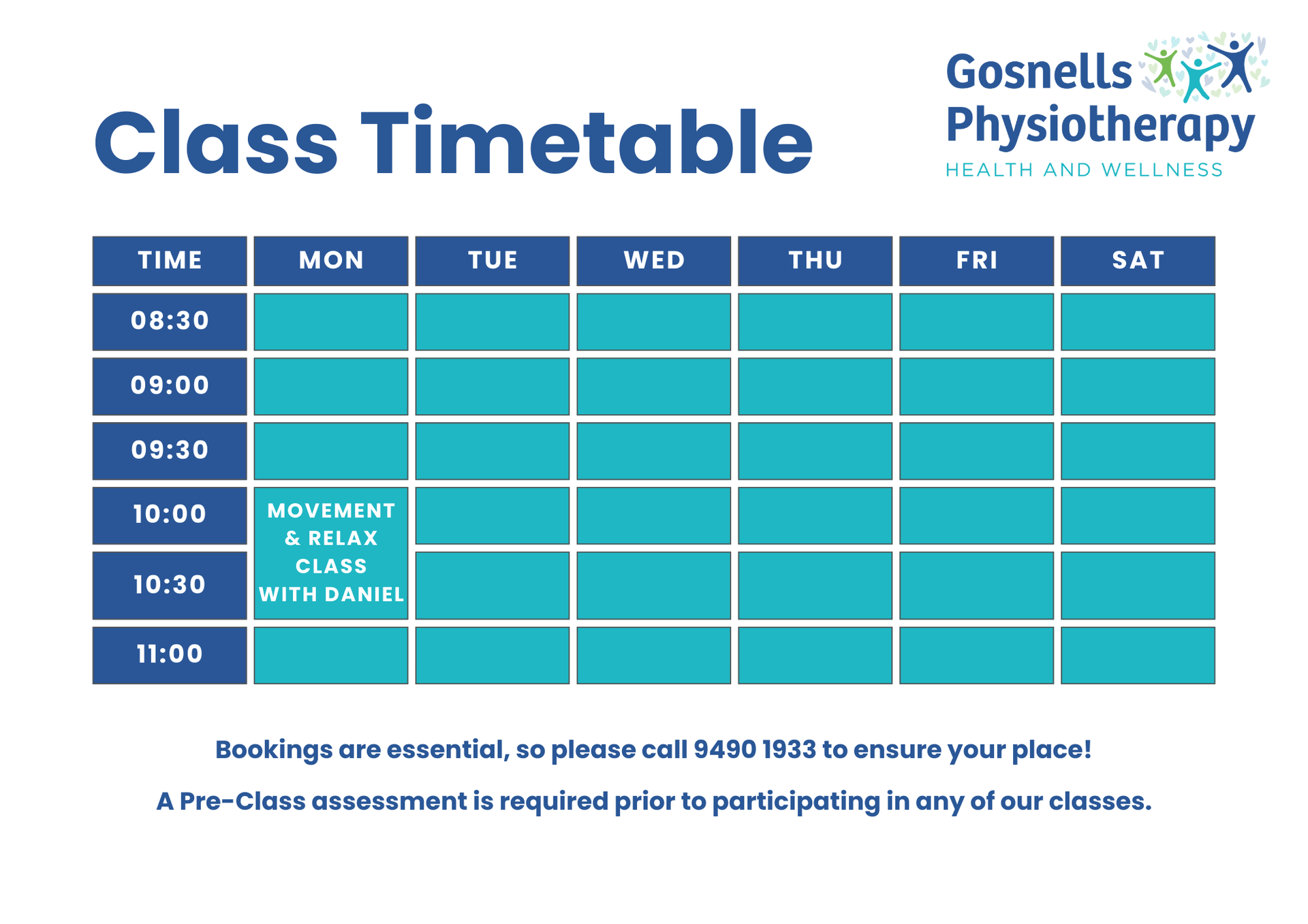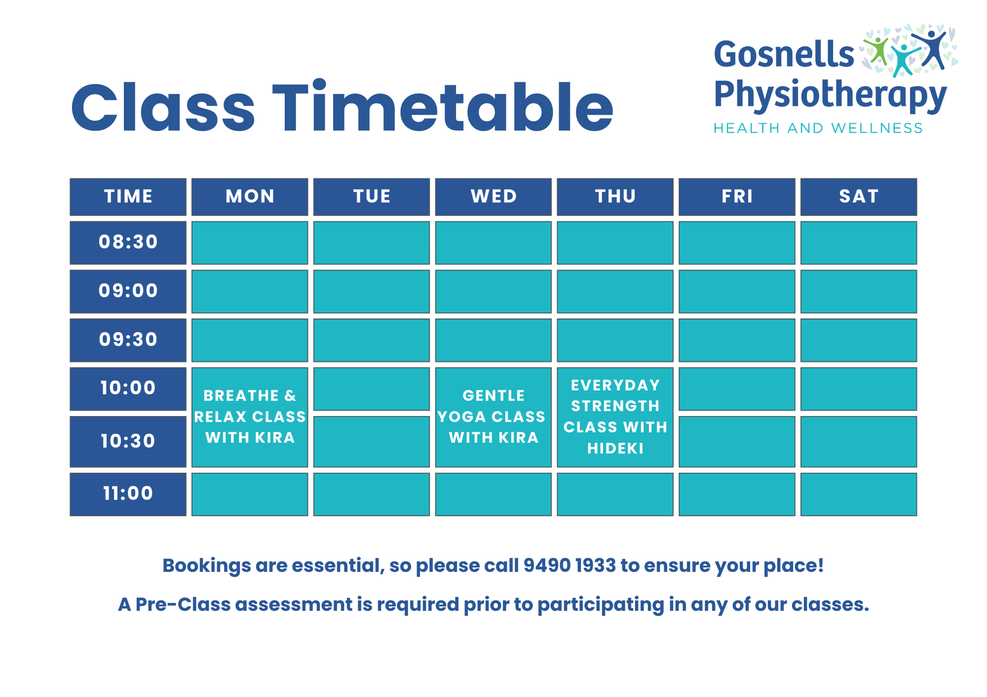 All classes are held at the health and wellness clinic at 62 Fremantle Road Gosnells.